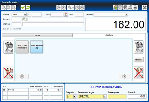 - Punto de venta manual o mediante asistente de ventas rápidas.